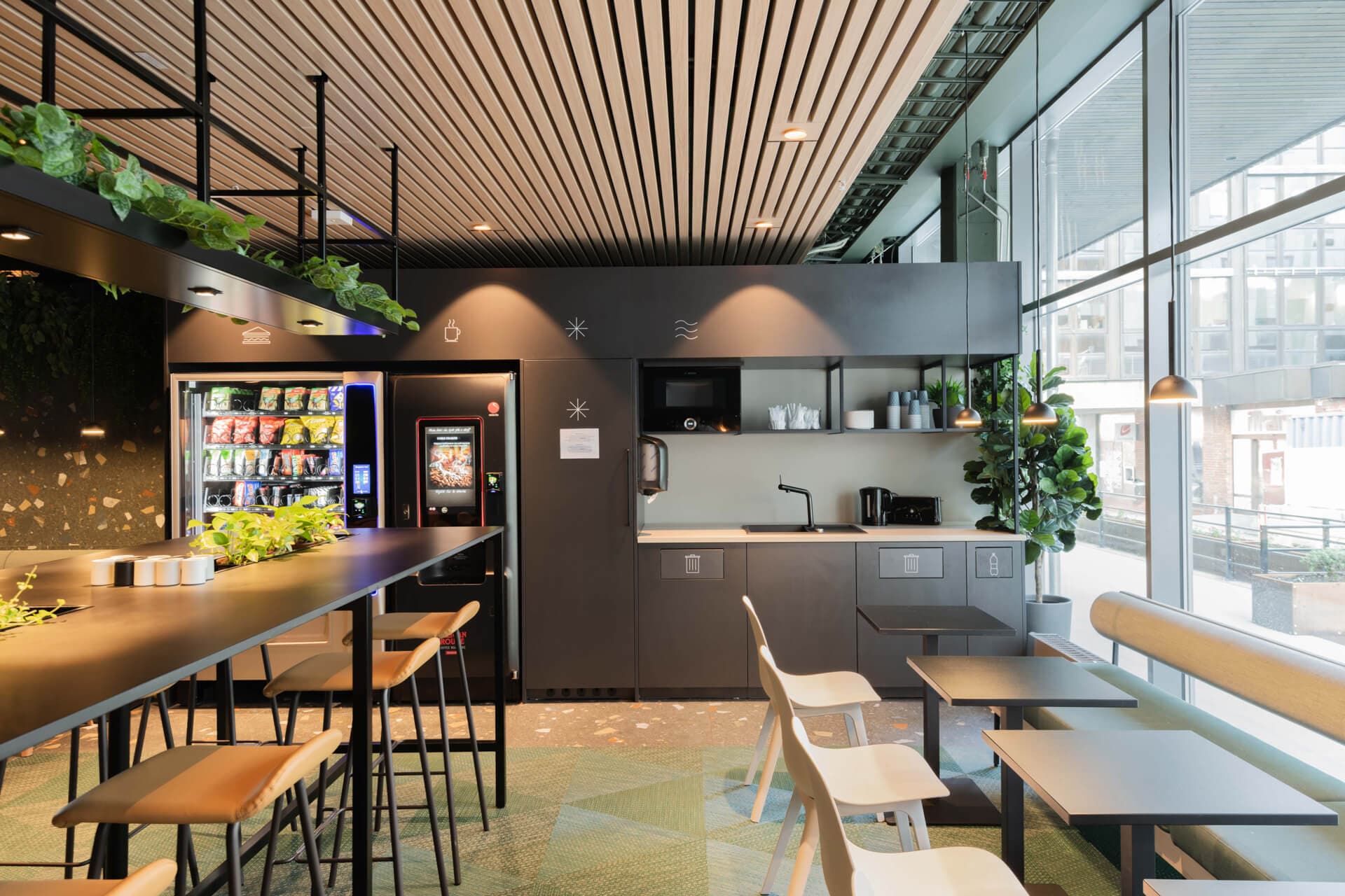 Hommikusöök ei ole hinna sees. Kohvi ja suupisteid saab osta fuajees asuvatest müügiautomaatidest. Meil on ka külaliste köök, mis on varustatud mikrolaineahju, rösteri ja veekeetjaga, nii et saate ise oma hommikusöögi valmistada. Samuti võite osta hommikusööki meie partnerrestoranist JAJA, mis avatakse tööpäeviti kell 7 ja nädalavahetustel kell 8 hommikul.